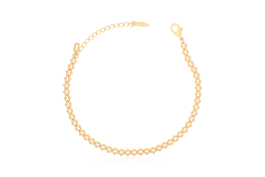 PULSEIRA BANHADA EM OURO, CORRENTE ELO CORDA 3mm, 17cm COMPRIMENTO, EXTENSOR 5cm COMPRIMENTO E PESO 5,30g