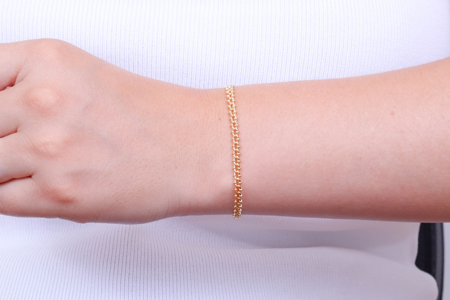 PULSEIRA BANHADA EM OURO, CORRENTE ELO CARTIER 8,50x3,30mm, 19 E 20cm COMPRIMENTO E PESO 3,30g