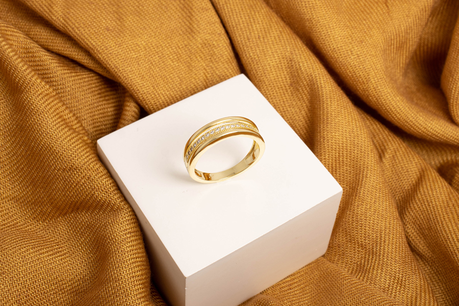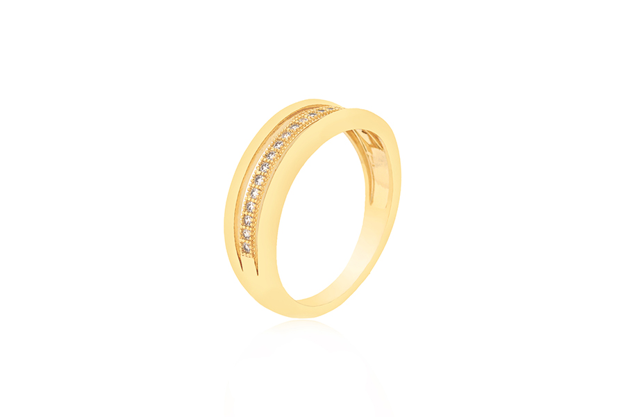 ANEL BANHADO EM OURO, COM ZIRCÔNIAS