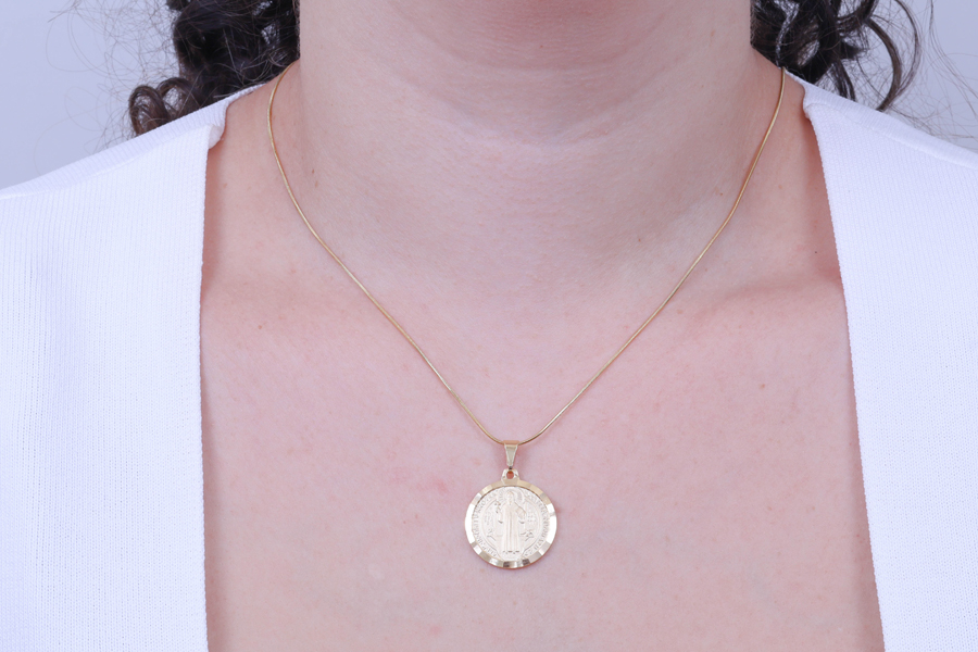 PINGENTE BANHADO EM OURO SAO BENTO 18mm DIÂMETRO, LINHA TRADICIONAL