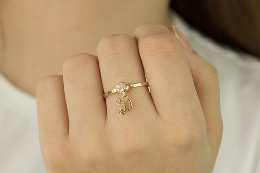 ANEL BANHADO EM OURO APARADOR COM ANEL DE CORAÇÃO COM BANHO DE PRATA LEVE