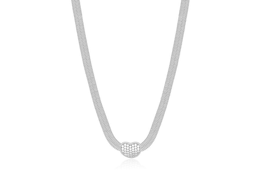 GARGANTILHA EM PRATA, ELO VENEZIANA 0,60mm, 40cm COMPRIMENTO, EXTENSOR 5cm, CORAÇÃO 10mm LARGURA, COM BANHO DE RÓDIO BRANCO, COLEÇÃO AURA
