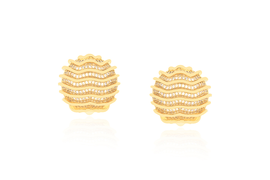 BRINCO BANHADO EM OURO, PIZZA 14mm DE DIÂMETRO, PARA ZIRCÔNIA BRANCA OU COLORIDA