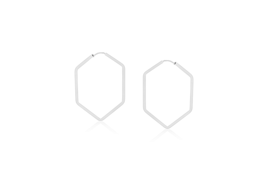 BRINCO BANHADO EM RÓDIO BRANCO, 47mm ALTURA E 25mm LARGURA, LISO OU ACETINADO