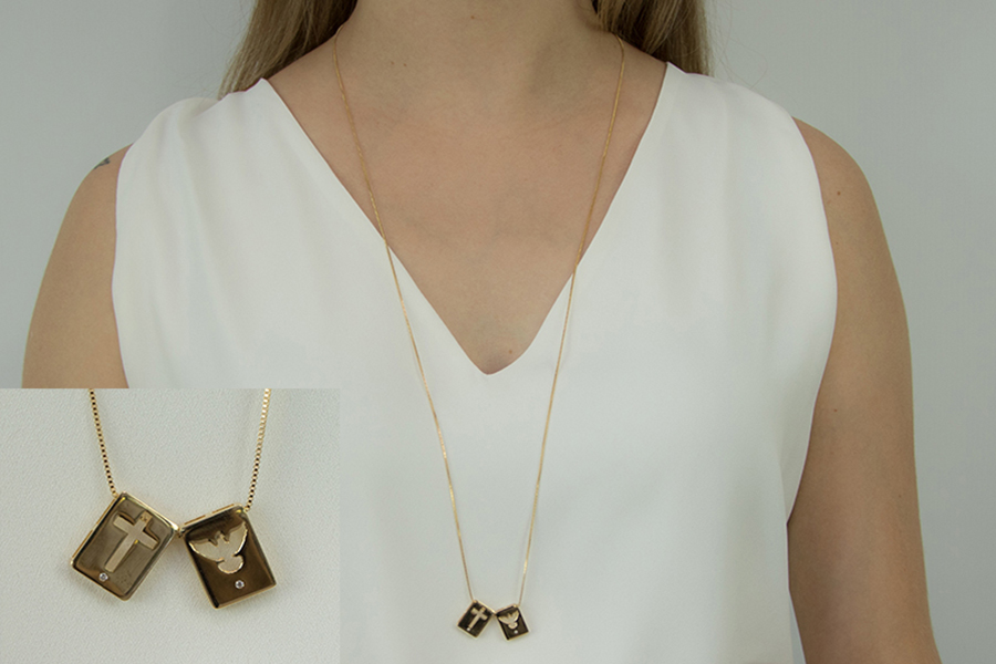 ESCAPULÁRIO EM PRATA, SAGRADO CORAÇÃO DE JESUS E NOSSA SENHORA DO CARMO, RETANGULAR 9,50mm LARGURA, ELO GRUMET, 60cm COMPRIMENTO