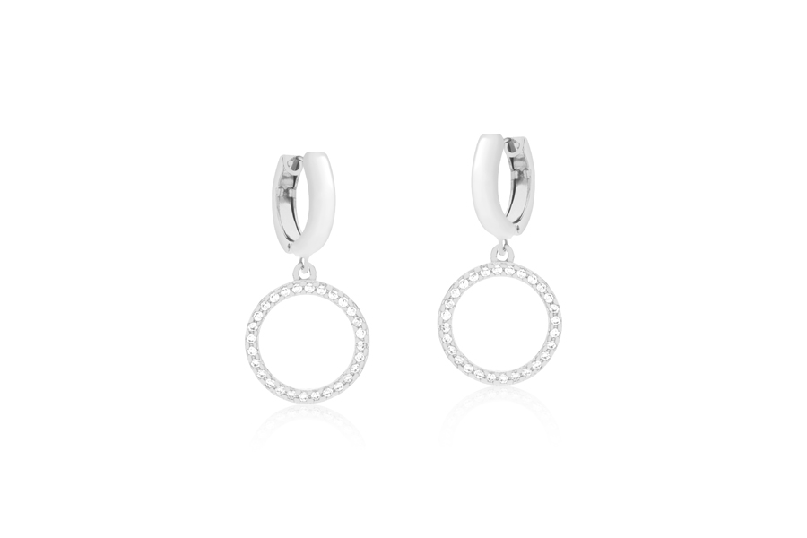 BRINCO BANHADO EM RÓDIO BRANCO, 35mm ALTURA E ZIRCÔNIA 8mm