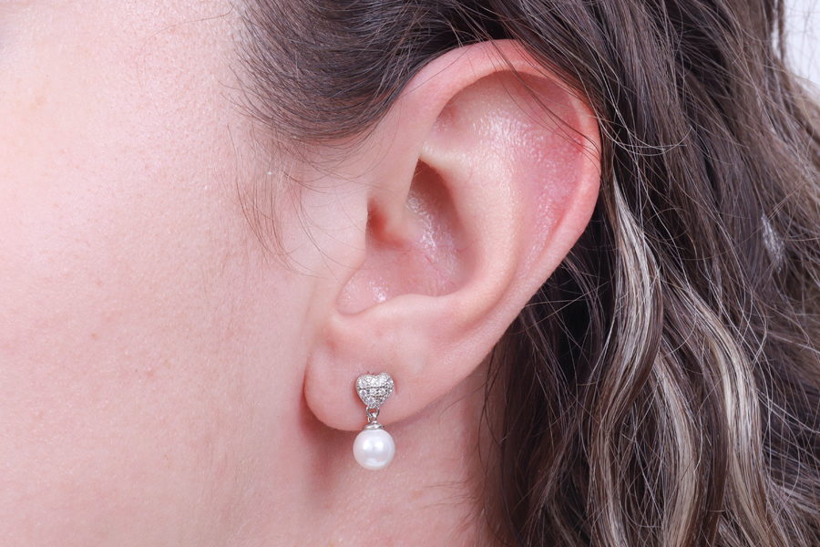 BRINCO EM PRATA, CORAÇÃO 8mm LARGURA, COM BANHO DE RÓDIO BRANCO, COLEÇÃO AURA
