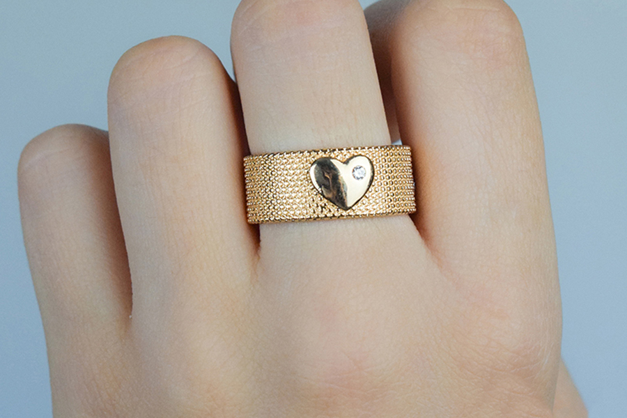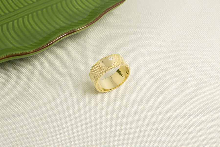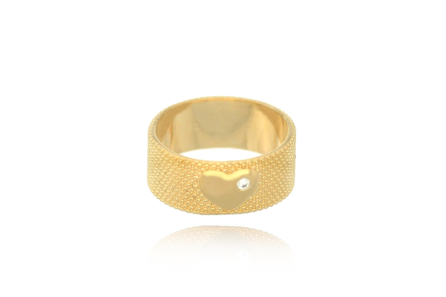 ANEL BANHADO EM OURO, MINGO, 12mm LARGURA, CORAÇÃO