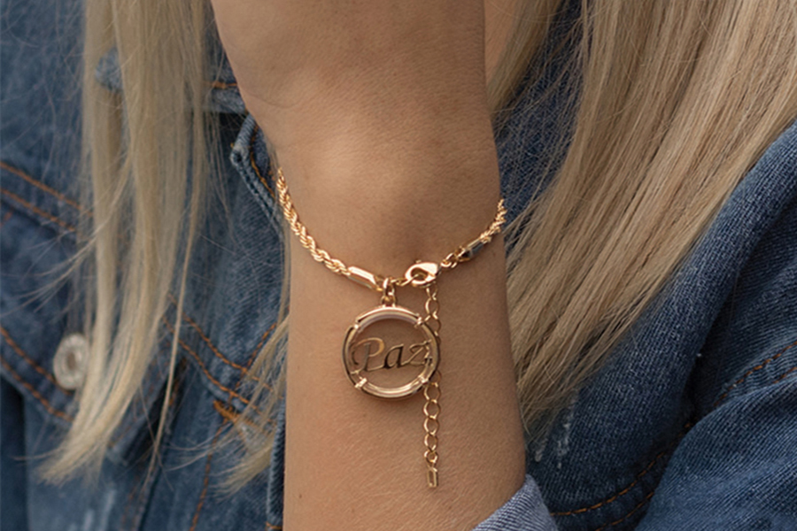 PULSEIRA BANHADA EM OURO, ELO PORTUGUÊS 3mm, ELO CORAÇÃO 4,20mm LARGURA, PINGENTE CORAÇÃO 11mm LARGURA COM MENINA