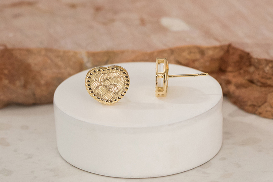 BRINCO BANHADO EM OURO, CORAÇÃO 3,50mm LARGURA COM TARRAXA BABY