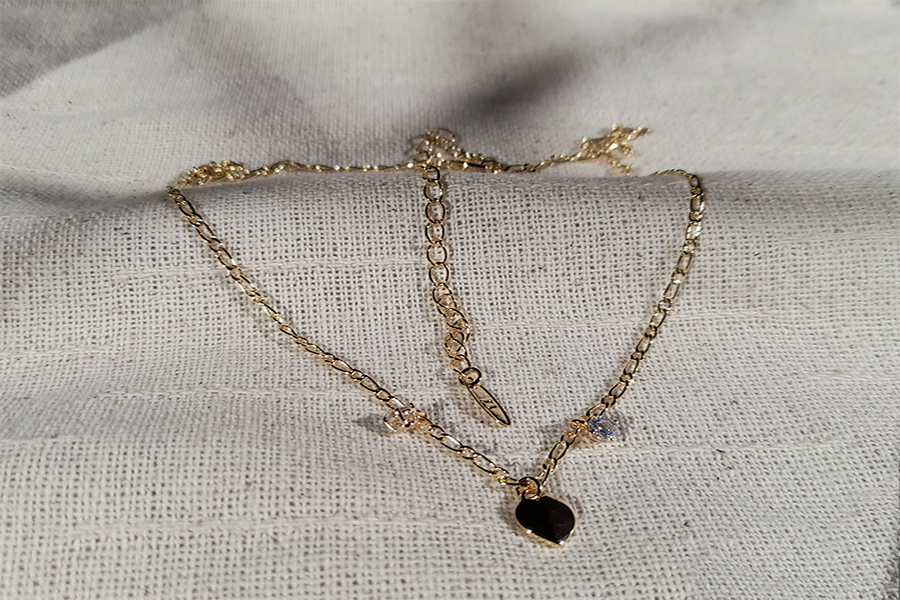 GARGANTILHA BANHADA EM OURO, 2,40mm ESPESSURA, 40cm DE COMPRIMENTO E CORAÇÃO 14mm LARGURA E 12mm ALTURA