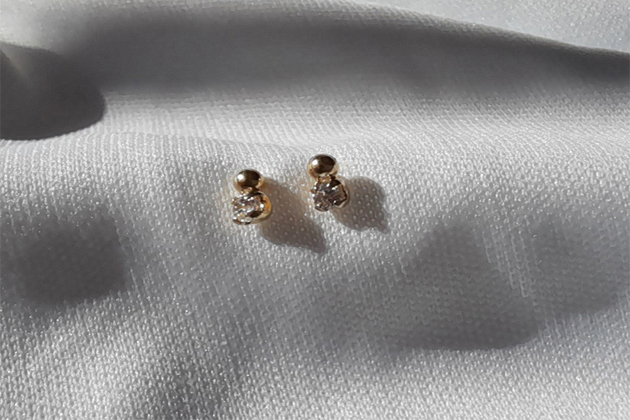 BRINCO BANHADO EM OURO, PONTO DE LUZ 2mm COM TARRAXA BABY