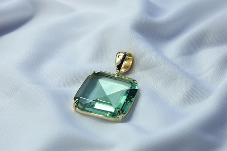 PINGENTE BANHADO EM OURO, CRISTAL MÃO DE FÁTIMA 22mm DIÂMETRO