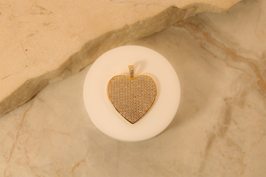 PINGENTE BANHADO EM OURO, RELICÁRIO CORAÇÃO 13mm LARGURA E CONTRA ARGOLA COM 5 ZIRCÔNIAS