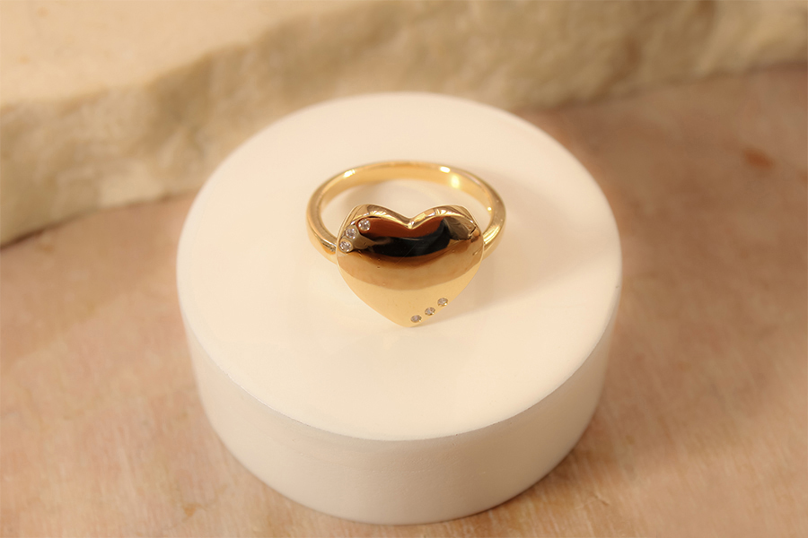 ANEL BANHADO EM OURO CORAÇÃO 15mm ALTURA