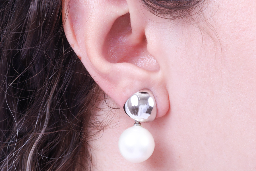 BRINCO BANHADO EM RÓDIO BRANCO, NAVETE 7,50mm COMPRIMENTO