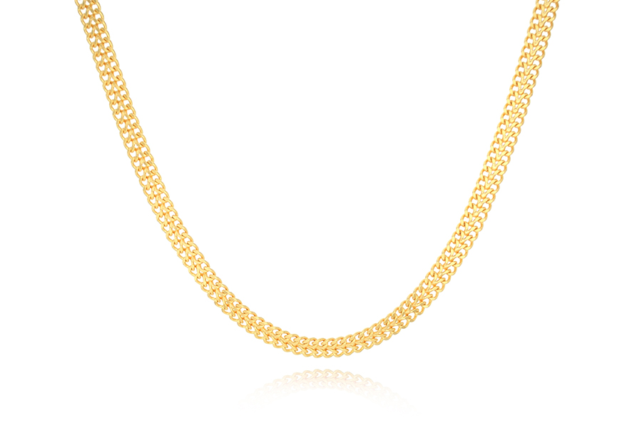 CORRENTE BANHADA EM OURO, ELO PORTUGUÊS 1,80mm, 45cm COMPRIMENTO, EXTENSOR 5cm COMPRIMENTO E PESO 3,40g