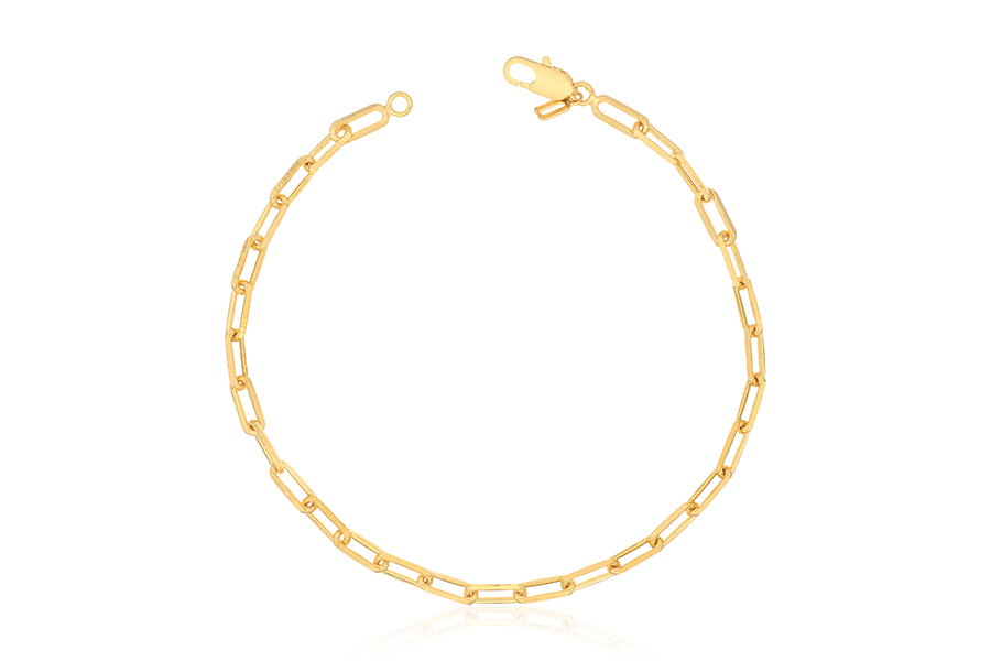 PULSEIRA BANHADA EM OURO, CORRENTE ELO PORTUGUÊS 5mm, 17cm COMPRIMENTO, EXTENSOR 5cm COMPRIMENTO E PESO 4,60g