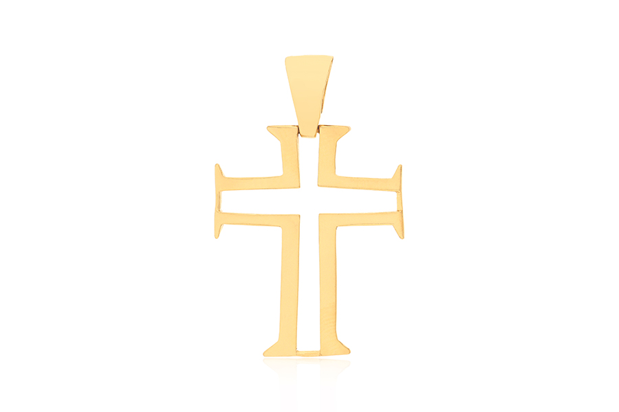 PINGENTE BANHADO EM OURO CRUZ QUADRADO 35X26mm
