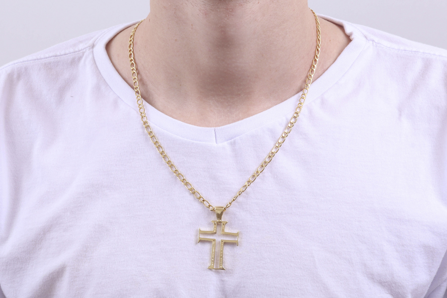 PINGENTE BANHADO EM OURO, 15mm DE DIÂMETRO, CRUZ