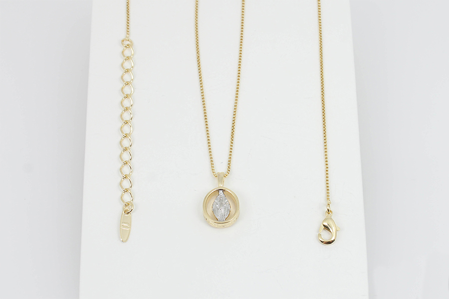 GARGANTILHA BANHADA EM OURO, CRISTAL FUSION GOTA 25x18mm, ELO 1,50mm, 75cm COMPRIMENTO, QUALQUER COR