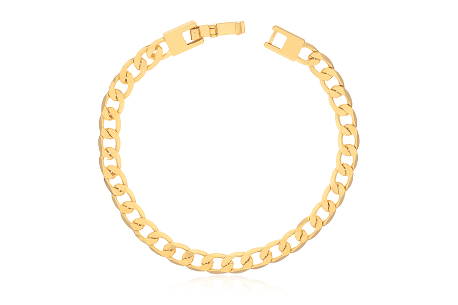 PULSEIRA BANHADA EM OURO, ELO 2,30mm LARGURA, 16cm COMPRIMENTO, EXTENSOR 5cm COMPRIMENTO E CORAÇÃO 7mm LARGURA, PARA QUALQUER COR