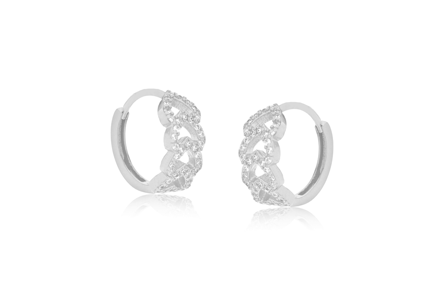 BRINCO EM PRATA, CORAÇÃO 10mm LARGURA, COM BANHO DE RÓDIO BRANCO, COLEÇÃO AURA
