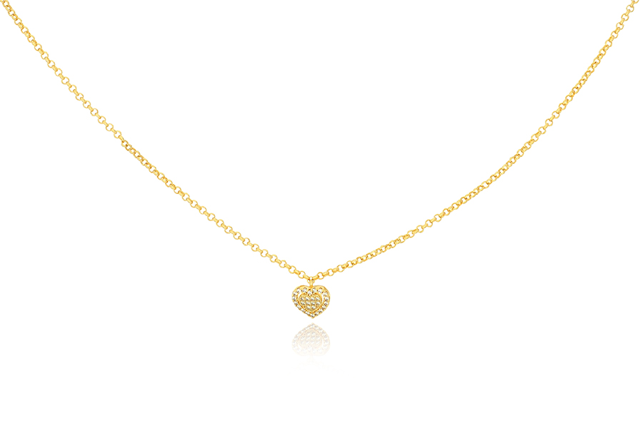 GARGANTILHA BANHADA EM OURO, 2,40mm ESPESSURA, 40cm DE COMPRIMENTO E CORAÇÃO 14mm LARGURA E 12mm ALTURA