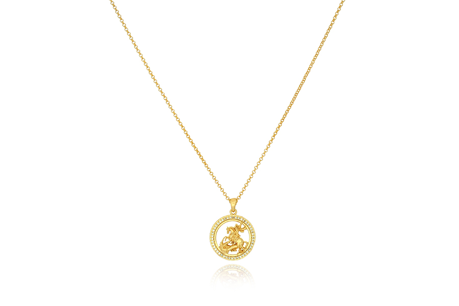 GARGANTILHA BANHADA EM OURO, ELO 2mm LARGURA, PONTO DE LUZ 4,50mm E SÃO BENTO 12,50mm DIÂMETRO