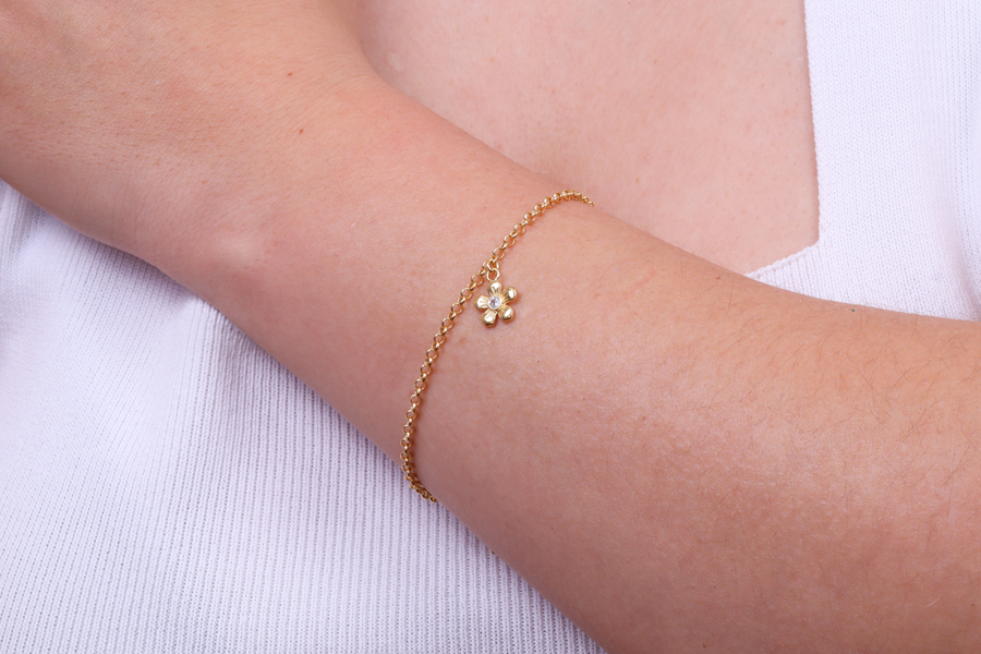 PULSEIRA BANHADA EM OURO, CRISTAL GOTA 14X10mm, ELO CARTIER 6,90X2,70mm, 16cm COMPRIMENTO E EXTENSOR 5cm COMPRIMENTO