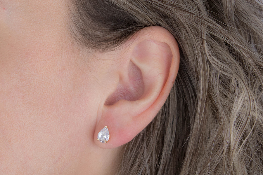 BRINCO BANHADO EM OURO, GOTA 8X6mm, PARA QUALQUER COR DE PEDRA