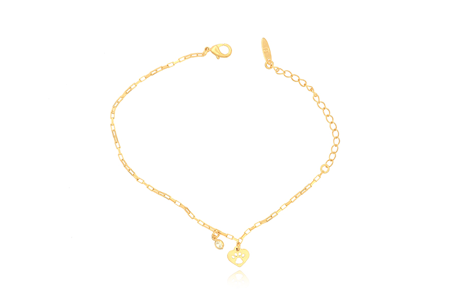 PULSEIRA BANHADA EM OURO, ELO 2,30mm LARGURA, 16cm COMPRIMENTO, EXTENSOR 5cm COMPRIMENTO E CORAÇÃO 7mm LARGURA, PARA QUALQUER COR
