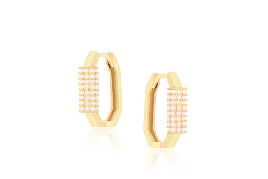 BRINCO BANHADO EM OURO, 15mm ALTURA COM 21 ZIRCÔNIAS