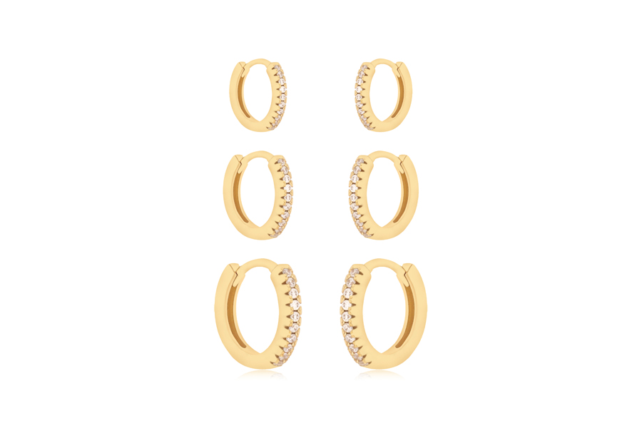 BRINCO BANHADO EM OURO, 15mm ALTURA COM 21 ZIRCÔNIAS