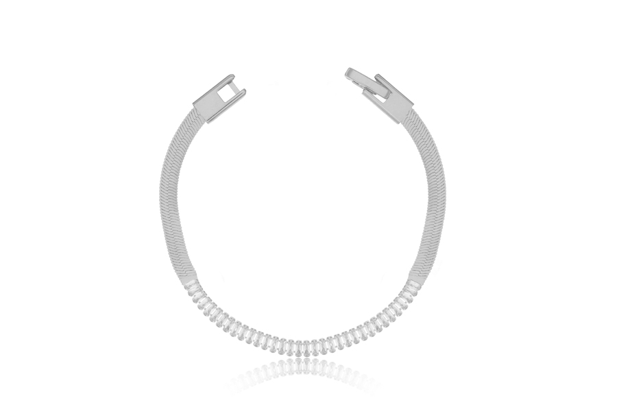 PULSEIRA BANHADA EM RÓDIO BRANCO, ELO PORTUGUÊS 5mm DIÂMETRO, 16cm COMPRIMENTO, EXTENSOR 5cm COMPRIMENTO E PONTO DE LUZ 8mm