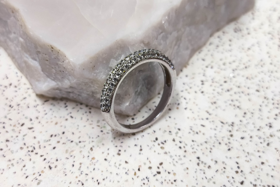 ANEL BANHADO EM RÓDIO BRANCO, COM 130 ZIRCÔNIAS