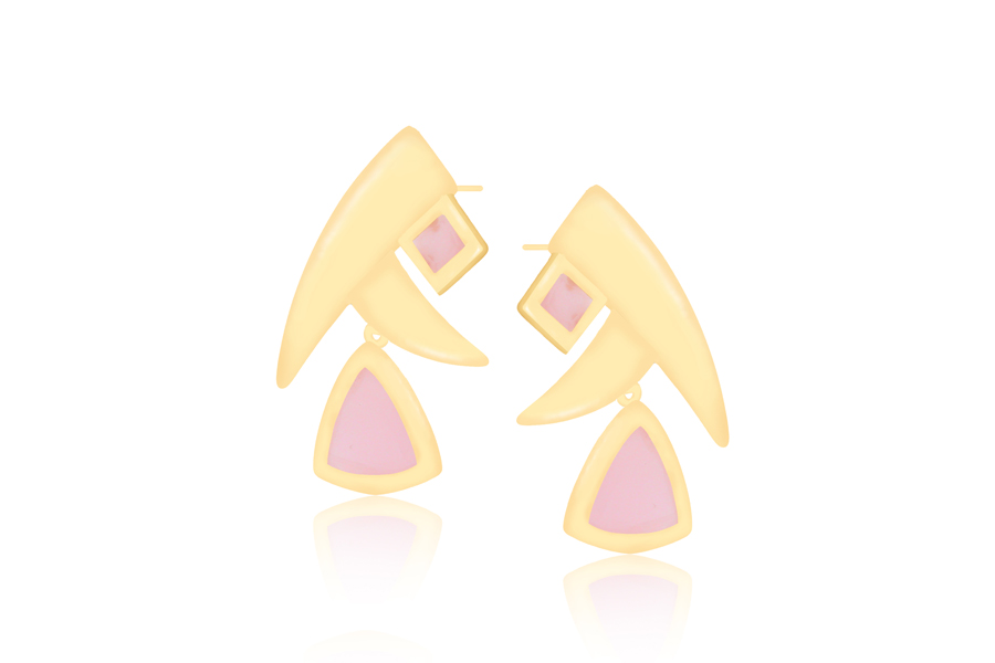 BRINCO BANHADO EM OURO, TRIÂNGULO 17mm ALTURA, 12,50mm LARGURA E ZIRCÔNIA 4,50mm DIÂMETRO, QUALQUER COR