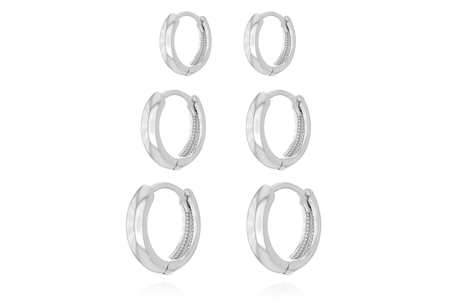 CONJUNTO BANHADO EM PRATA LEVE, TRIO DE ARGOLINHAS LISAS 12mm, 14mm E 16,50mm DIÂMETRO