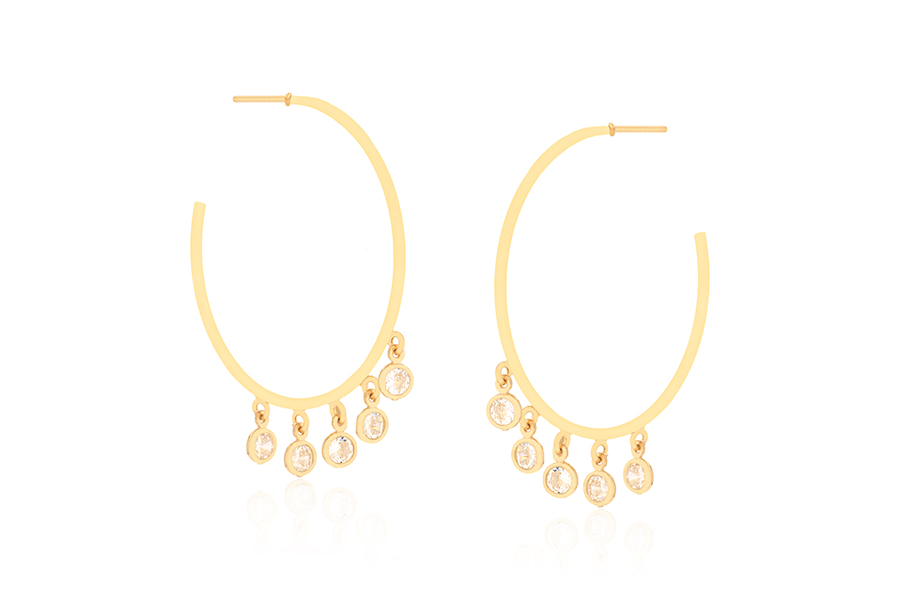 BRINCO BANHADO EM OURO, 15mm ALTURA COM 21 ZIRCÔNIAS