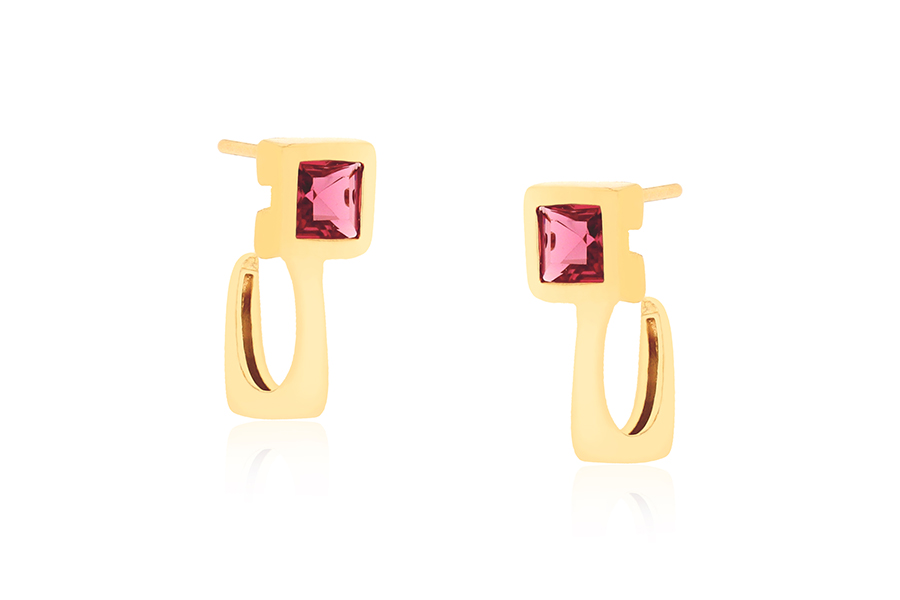 BRINCO BANHADO EM OURO, CRISTAL GOTA 18X12mm, COLEÇÃO PINK