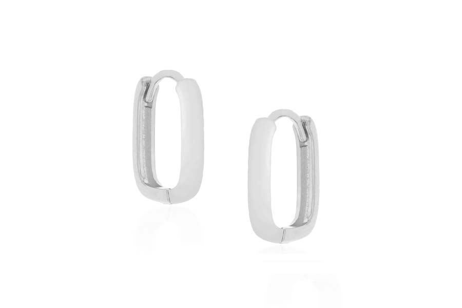 BRINCO BANHADO EM PRATA LEVE, ARGOLINHA RETANGULAR 11x8mm