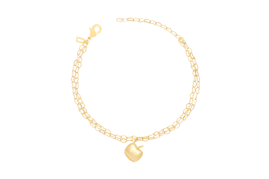 PULSEIRA INFANTIL BANHADA EM OURO, ELO DUPLO 1,80mm E CARTIER 3,50x1,90mm, 15cm COMPRIMENTO, CORAÇAO, ANJO E CHAVE