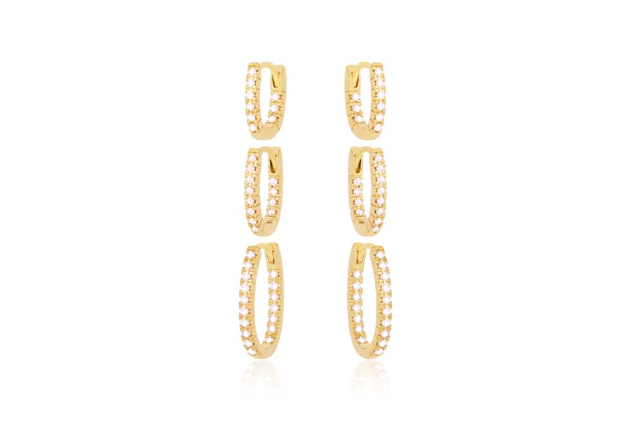 BRINCO BANHADO EM OURO, 15mm ALTURA COM 21 ZIRCÔNIAS