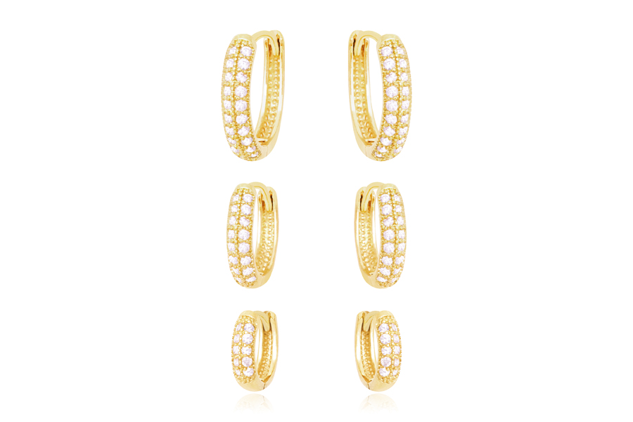 BRINCO BANHADO EM OURO 9mm LARGURA COM ZIRCÔNIAS BRANCAS OU COLORIDAS