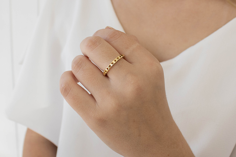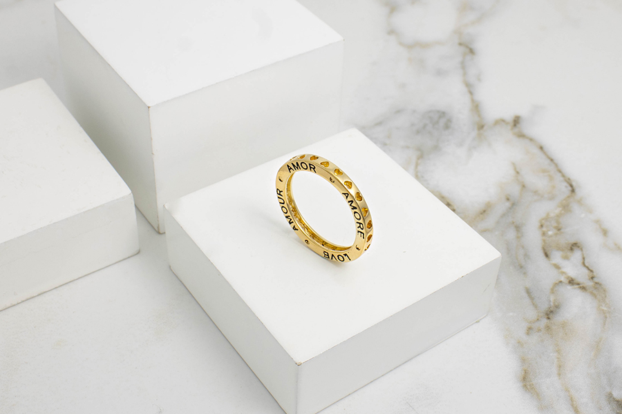 ANEL BANHADO EM OURO, MINGO, 12mm LARGURA, CORAÇÃO