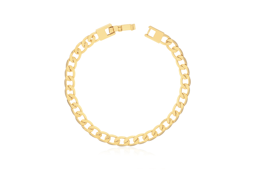PULSEIRA BANHADA EM OURO, CORRENTE ELO PORTUGUÊS 5mm, 17cm COMPRIMENTO, EXTENSOR 5cm COMPRIMENTO E PESO 4,60g