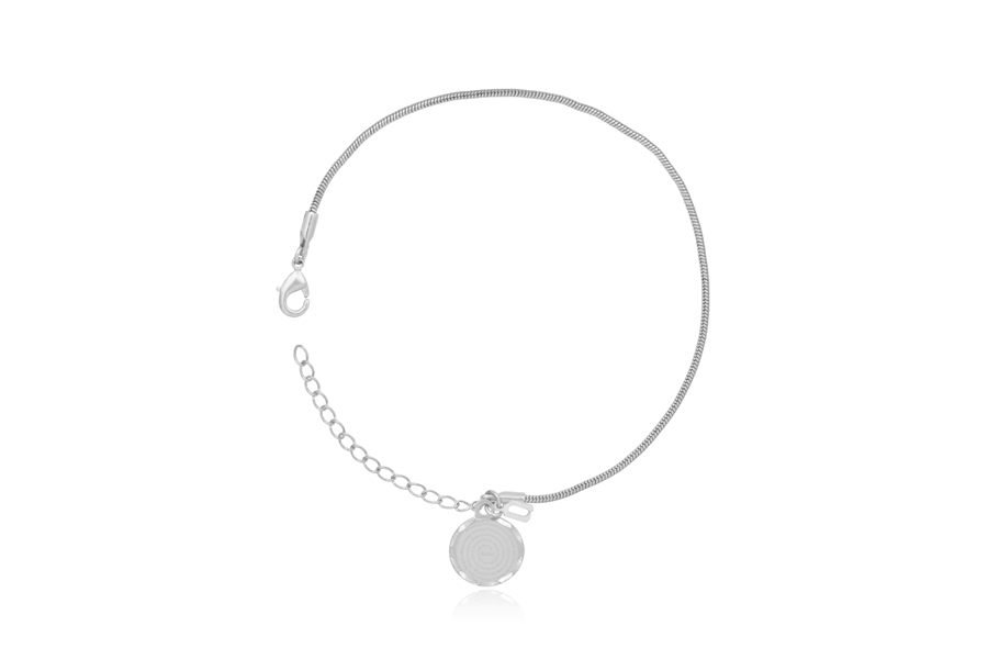 PULSEIRA BANHADA EM RÓDIO BRANCO, ELO PORTUGUÊS 3mm, 16cm COMPRIMENTO E PINGENTE ''FOREVER AND ALWAYS'' 17,50mm DIÂMETRO
