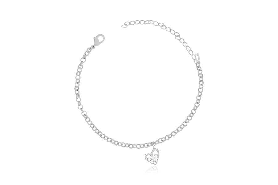 PULSEIRA BANHADA EM RÓDIO BRANCO, ELO PORTUGUÊS 3mm, 16cm COMPRIMENTO, EXTENSOR 5cm COMPRIMENTO E CORAÇÃO BEST FRIENDS FOREVER