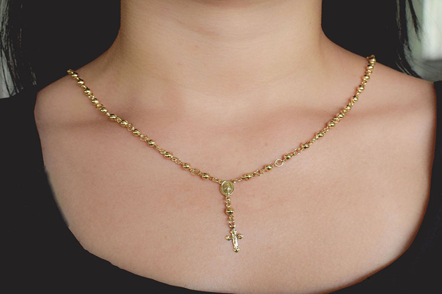 GARGANTILHA BANHADA EM OURO, PONTO DE LUZ 5mm, VENEZIANA 0,80mm, 40cm COMPRIMENTO, LINHA TRADICIONAL